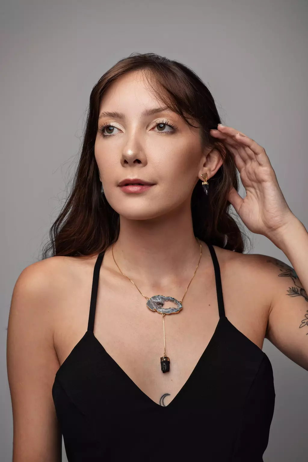 Abrace a elegância refinada dos Brincos Sombra Celestial, banhados a ouro 18k com perfeição. Apresentando pedras brutas de turmalina negra, estes brincos são meticulosamente trabalhados à mão e de origem ética, destacando a beleza única e as variações naturais das gemas. A turmalina negra é conhecida por suas poderosas propriedades protetoras, criando um escudo contra energias negativas e promovendo estabilidade emocional. Esses brincos sofisticados oferecem tanto estilo quanto benefícios espirituais, tornando-se uma adição atemporal para qualquer coleção.